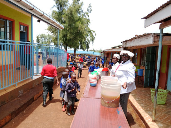 The lunch programme has been benefiting 250 pupils from needy families. Each school day, the needy school children are provided with porridge and an egg at 10 am. During lunch, the children are given a plate of rice with beans or ndengu (green grams) and a fruit.