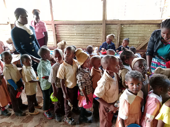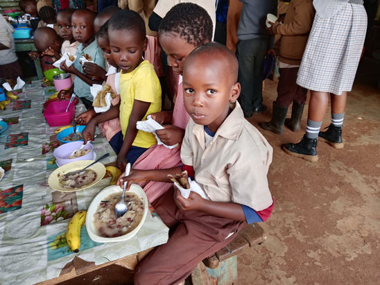 The lunch programme has been benefiting 60 pupils from needy families. Each school day, the needy school children are provided with porridge and an egg at 10 am. During lunch, the children are given a plate of rice with beans or ndengu (green grams) and a fruit.